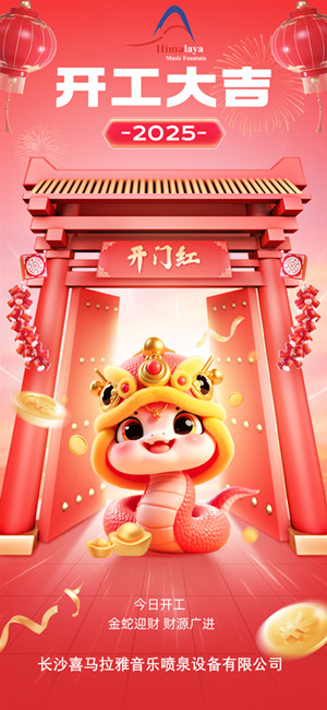 在這煥然一新的2025年,長沙喜馬拉雅音樂噴泉設(shè)備有限公司向大家送上最誠摯的祝福:愿每一份努力都能結(jié)出豐碩的果實,愿事業(yè)蒸蒸日上、前程似錦,愿生活幸福美滿、闔家安康!