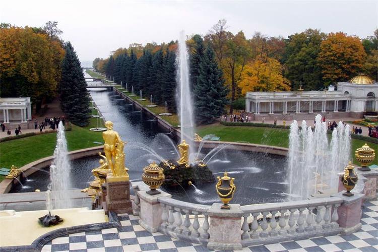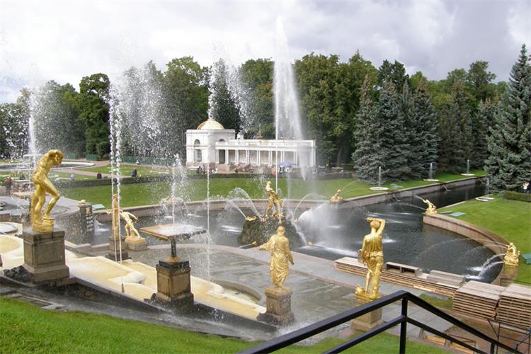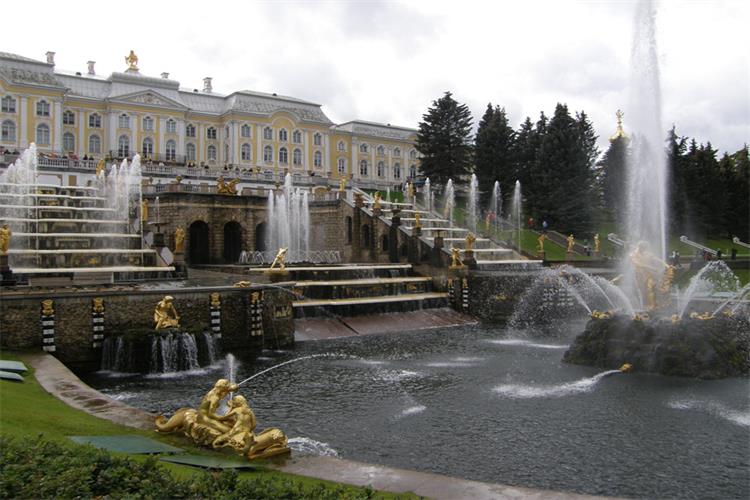 夏宮是1710年興建,占地800公頃,也被譽(yù)為“噴泉花園”,它是根據(jù)凡爾賽宮的模式為彼得大帝修建的一座夏日行宮,共有20座宮殿及超過(guò)170個(gè)噴泉,散布于7處園林中。其中最大最美的一處噴泉叫豪華小瀑布,正好在大宮殿前。它被200個(gè)金色雕像所環(huán)繞。