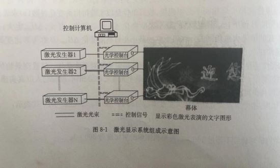 激光水幕表演,即以激光發(fā)生器為光源,在計算機的控制下,通過棱鏡、轉(zhuǎn)鏡、衍射光柵、光路掃描器等各種光學(xué)設(shè)備將激光光束進行分光、轉(zhuǎn)向、發(fā)散、掃描等處理,在音樂噴泉噴出的水幕墻上顯示出預(yù)定的效果,圖案、文字或動畫。