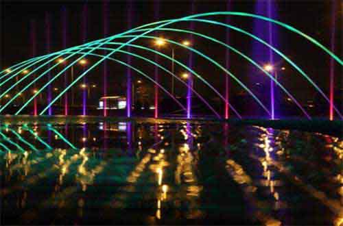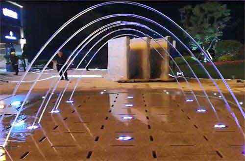該水景水型歡快、活潑,富有情趣。主要適用于酒店或購物中心、花園以及大型廣場(chǎng)和噴泉水景。在夜晚整條水柱通體發(fā)光,恍若光纖,光隨水泄,蔚為壯觀!水流所到之處,裝扮得異彩紛呈。