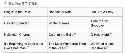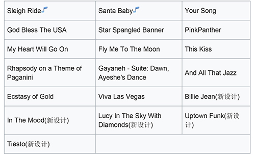現(xiàn)知Bellagio Fountain一共有31首表演音樂(lè), 包括:
