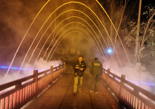 又稱“噴泉光影走廊”或“時(shí)光拱門”,通過多組波光噴頭對(duì)射形成拱門結(jié)構(gòu),配合LED光影,打造可穿越式的互動(dòng)走廊。